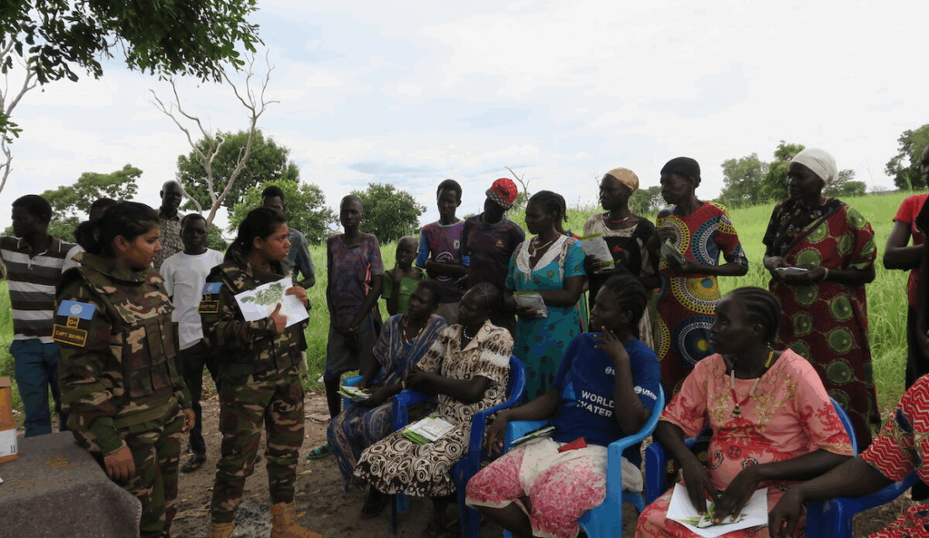 “We heard about the shortage of food and lack of seeds from community members, so we decided to reach out to a group of women here as we know that they are the ones taking the responsibility to feed everyone,” said Captain Sonar Tori, Commander of the Female Engagement Platoon.